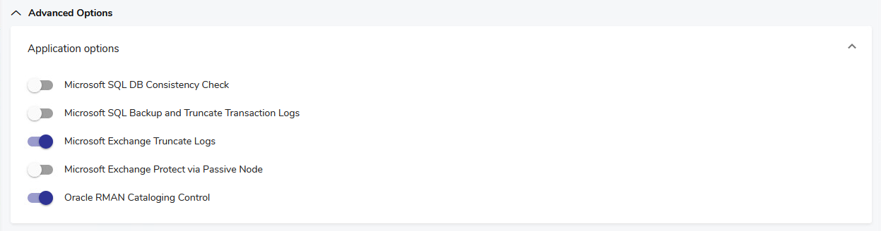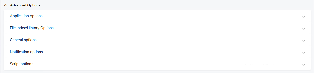 In the web interface, backup job options are defined in the Advanced Options section. To access them, do the following: