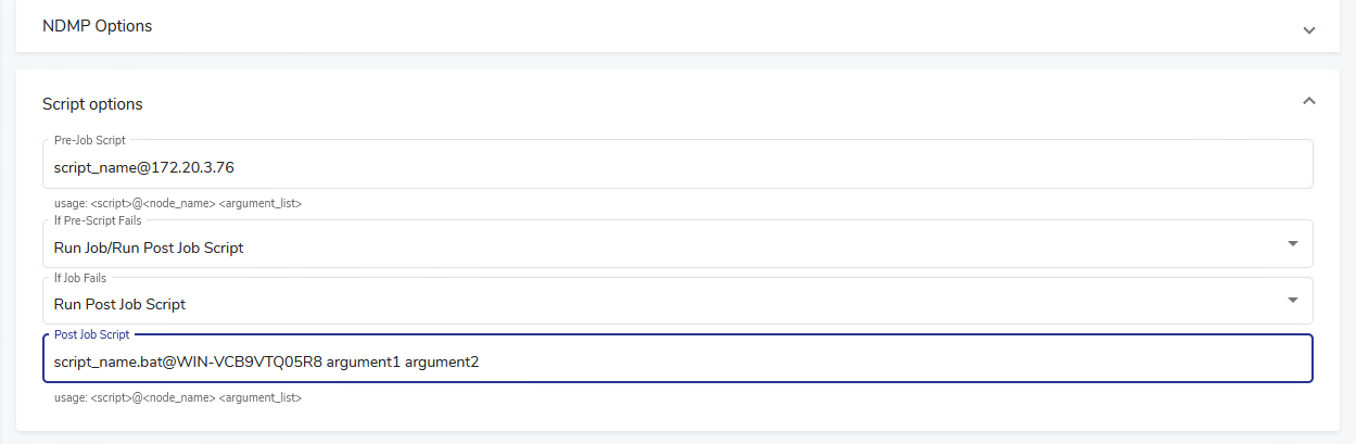 For detailed information about pre- and post-job scripts, including all valid definitions, see Pre-Scripts and Post-Scripts.