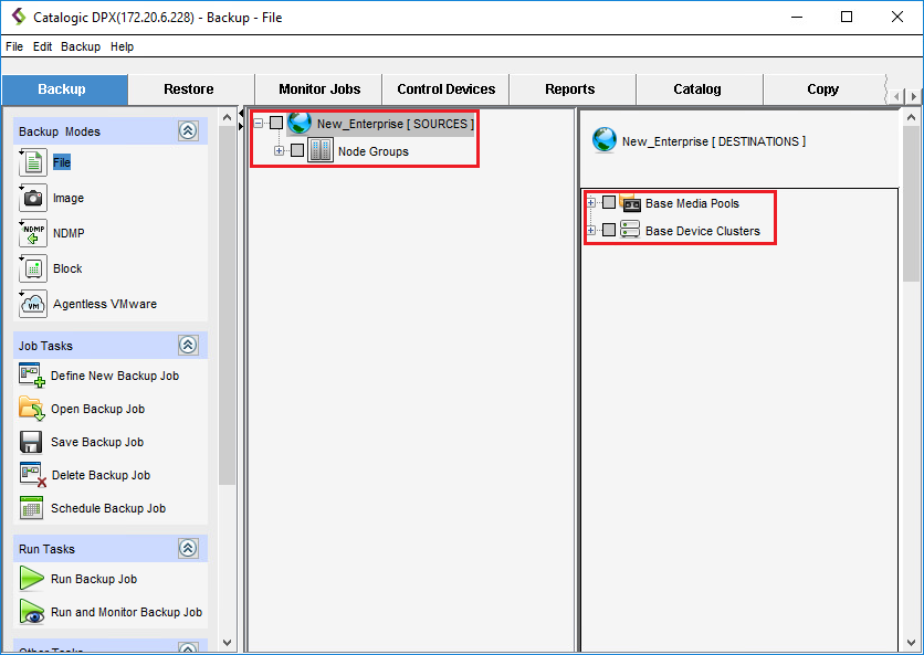Before running a file backup, you need to create a File Backup Job. To do this, use either of the DPX interfaces.