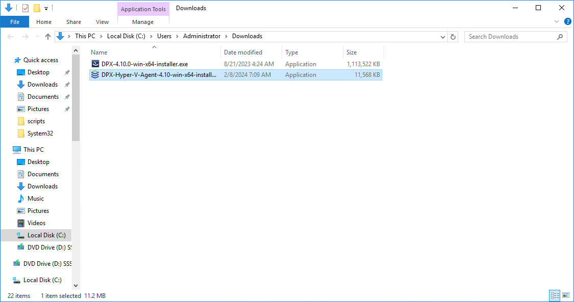 On the DPX 4.10 product page, under Software Download, find the Microsoft Hyper-V Agent installer and download it on your Hyper-V host machine.