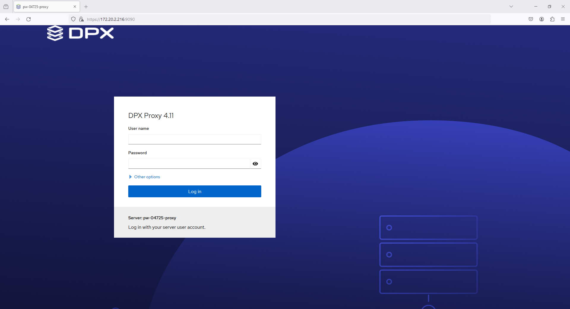 On the log-in page, enter the default user name and password for the Catalogic DPX Proxy Server: