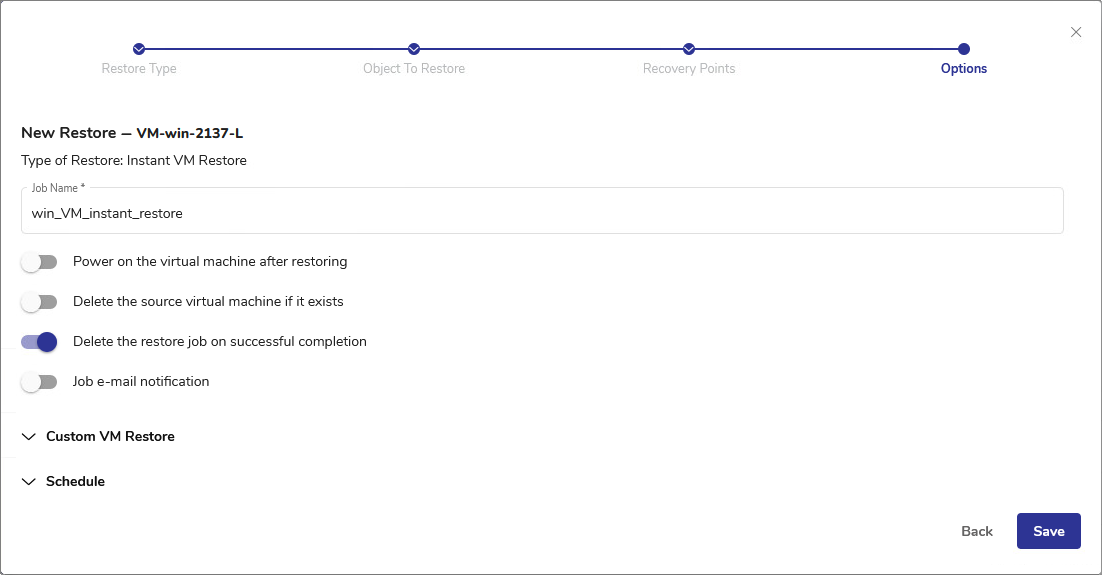 Toggle onThe restore job defined in this process will be deleted upon successful completion. If the job fails, it will not be deleted.
