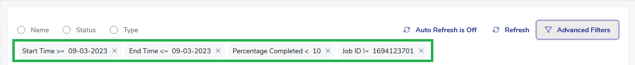 - Type filter is a drop-down list of job Types from among those present in the Job Manager.