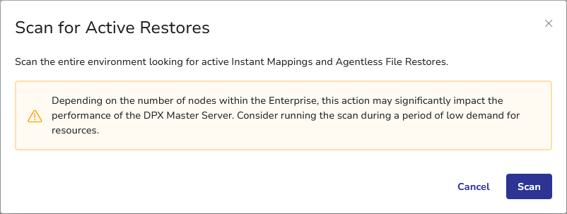 If you cannot see the freshly mounted volume in the Active Restores widget, click Scan….