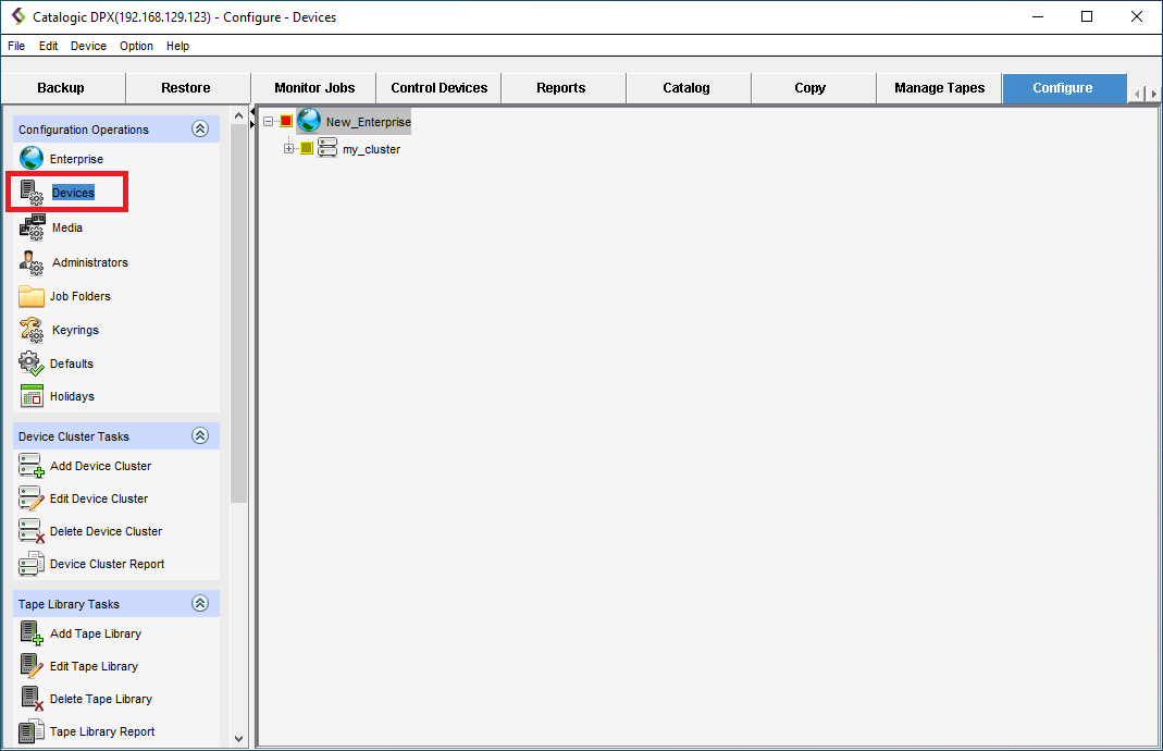- From the task panel, click Devices in the Configuration Options section.