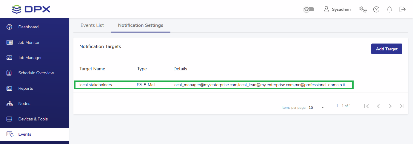 - Click Save. The new notification target is now added to the list.