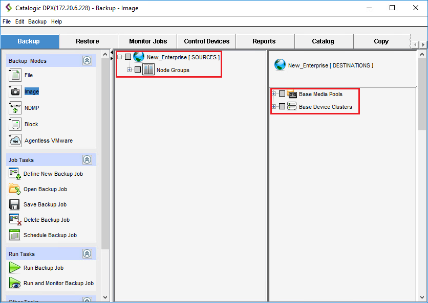 In Catalogic DPX version 4.12, only the desktop interface supports Image backups.