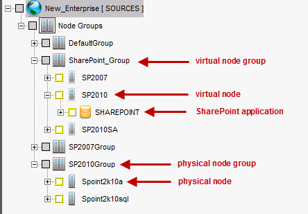 - The new physical node appears in its physical node group, and a new virtual node appears in the new SharePoint_Group virtual node group.