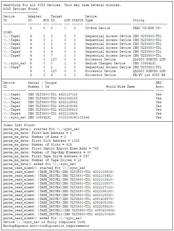- Part 3 – Tape library information gathered from reading the media changer device