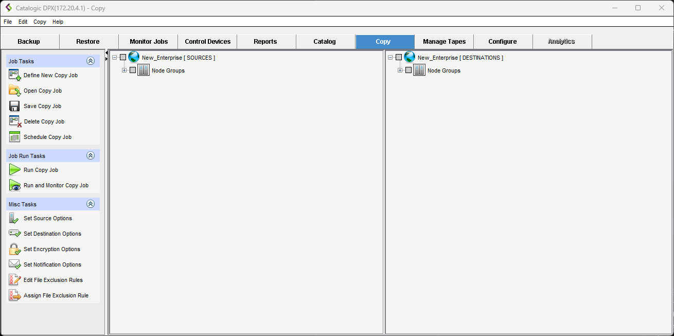 Define a copy job and schedule a copy job or open, save, and delete an existing job.
