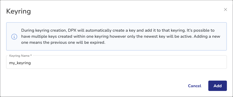 - Specify the keyring name. Click Add.