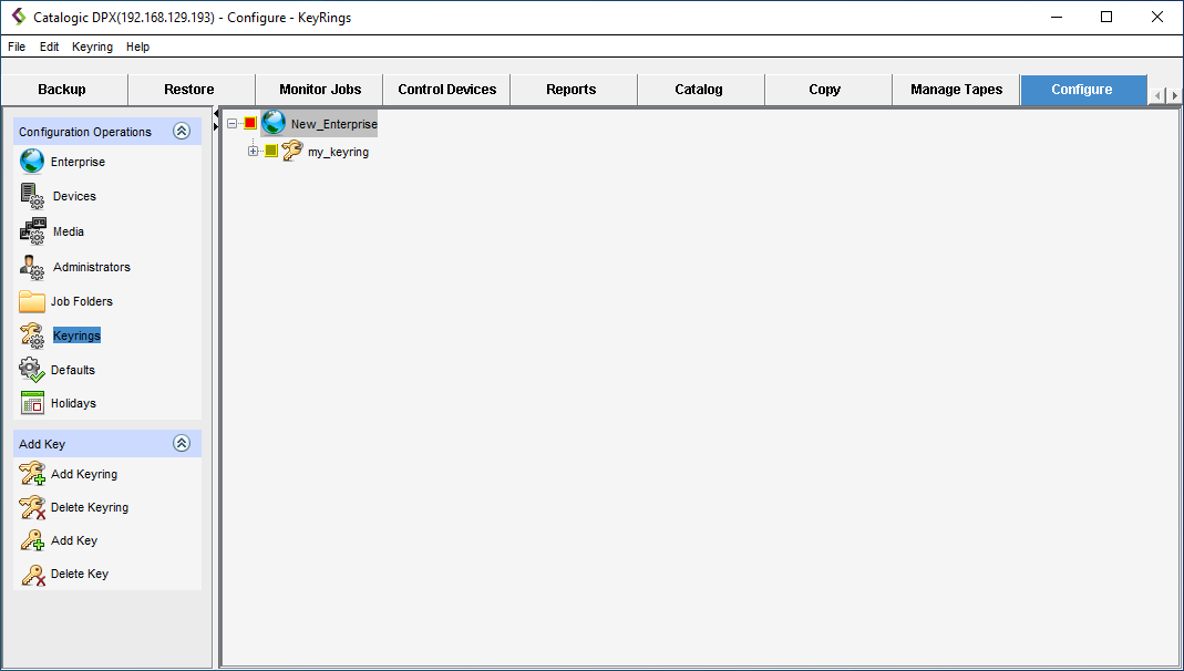 - Right-click the Enterprise and select Add Keyring.