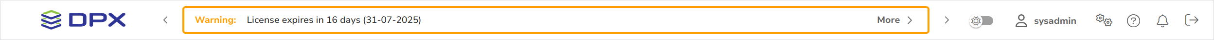The central part of the header is used to display warning and error messages for the user, e.g. concerning license usage. This component displays one message at a time in the form of a carousel, with navigation arrows[x]and[x]allowing the user to cycle through multiple alerts.