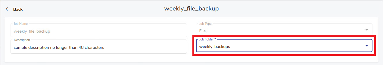 You can also create a new Job Folder when creating or editing a job. The upper section of the job creating/editing view contains a drop-down Job Folder selection where you can select an existing job folder or add a new one.