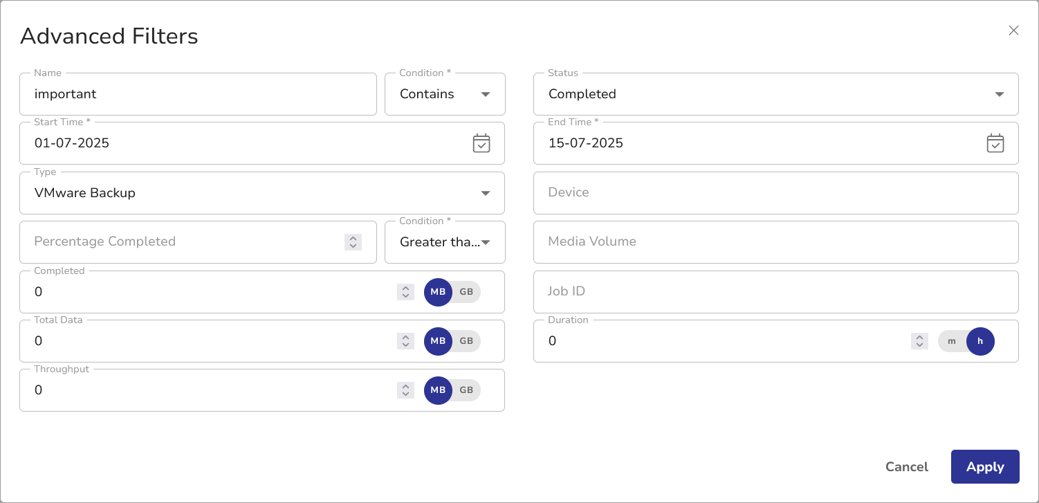 1. Click the Advanced Filters button. The Advanced Filters dialog appears.