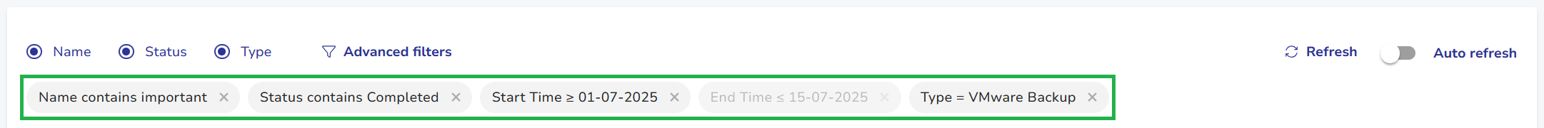 • Type filter is a drop-down list of job Types from among those present in the Job Manager.