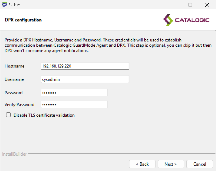 You can enable or disable DPX SSL certificate validation using GuardMode CLI. For details, see: .\Catalogic.GuardMode.Agent.exe config update notification-provider dpx --help