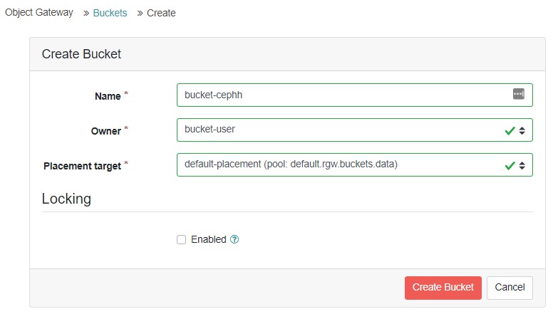 Log in to the Ceph dashboard. Open Object gateway and then go to "Buckets".