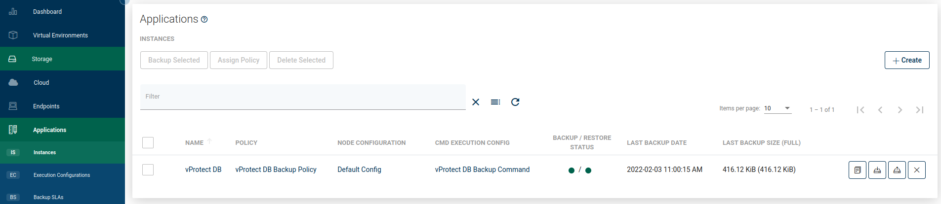 This tab shows information about all backups made for this application, including those failed, removed (because of retention), or currently executing.