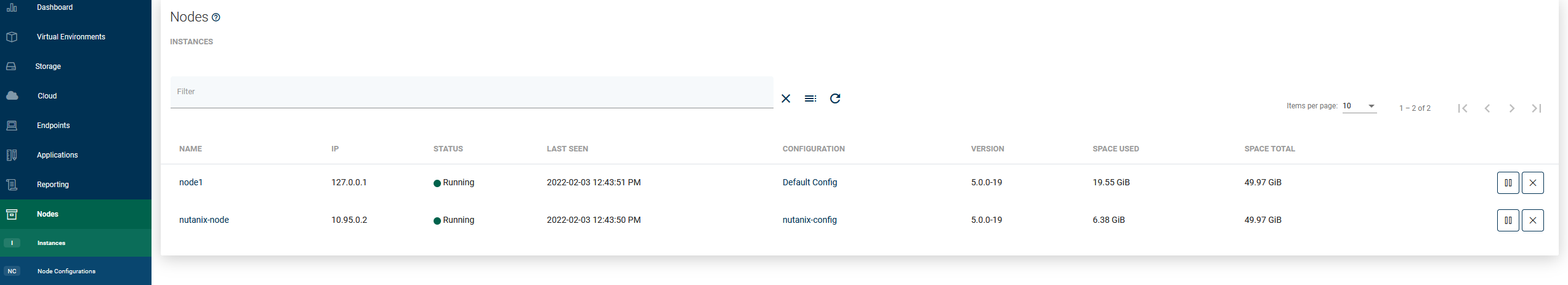Node instances are a list of the vPlus nodes that currently exist in your environment. You can easily check basic information about the nodes or change the assigned node configuration.