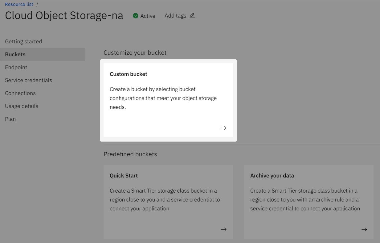 You can choose predefined templates or select the option to create a bucket with your own settings. In this example, we will choose "Custom bucket".