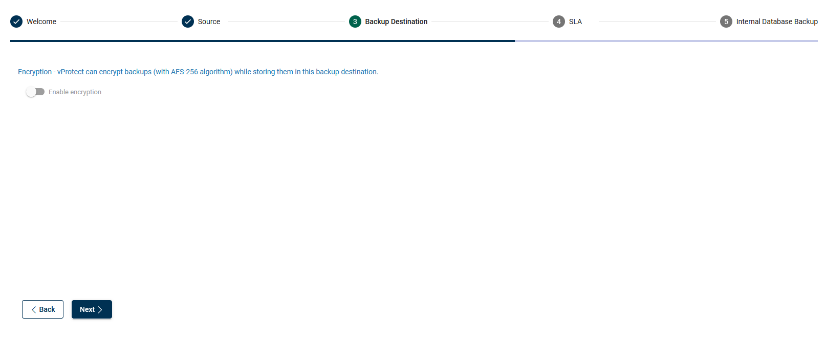 Optionally you can enable encryption (AES-256 algorithm) - if you enable it, remember that you will not benefit from deduplication.