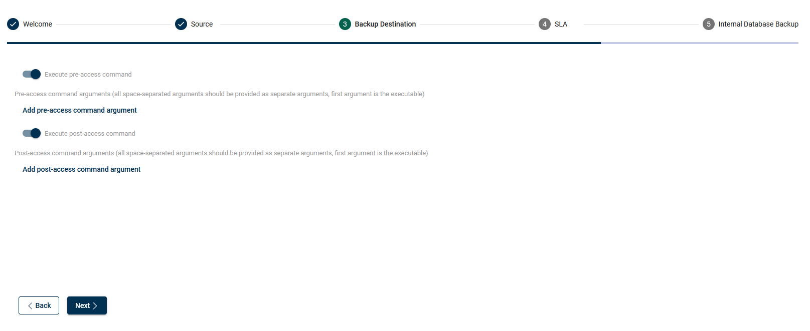 Configuration for pre- / post-execution command. If you use a File System with VDO integration of standard filesystem, skip this step.