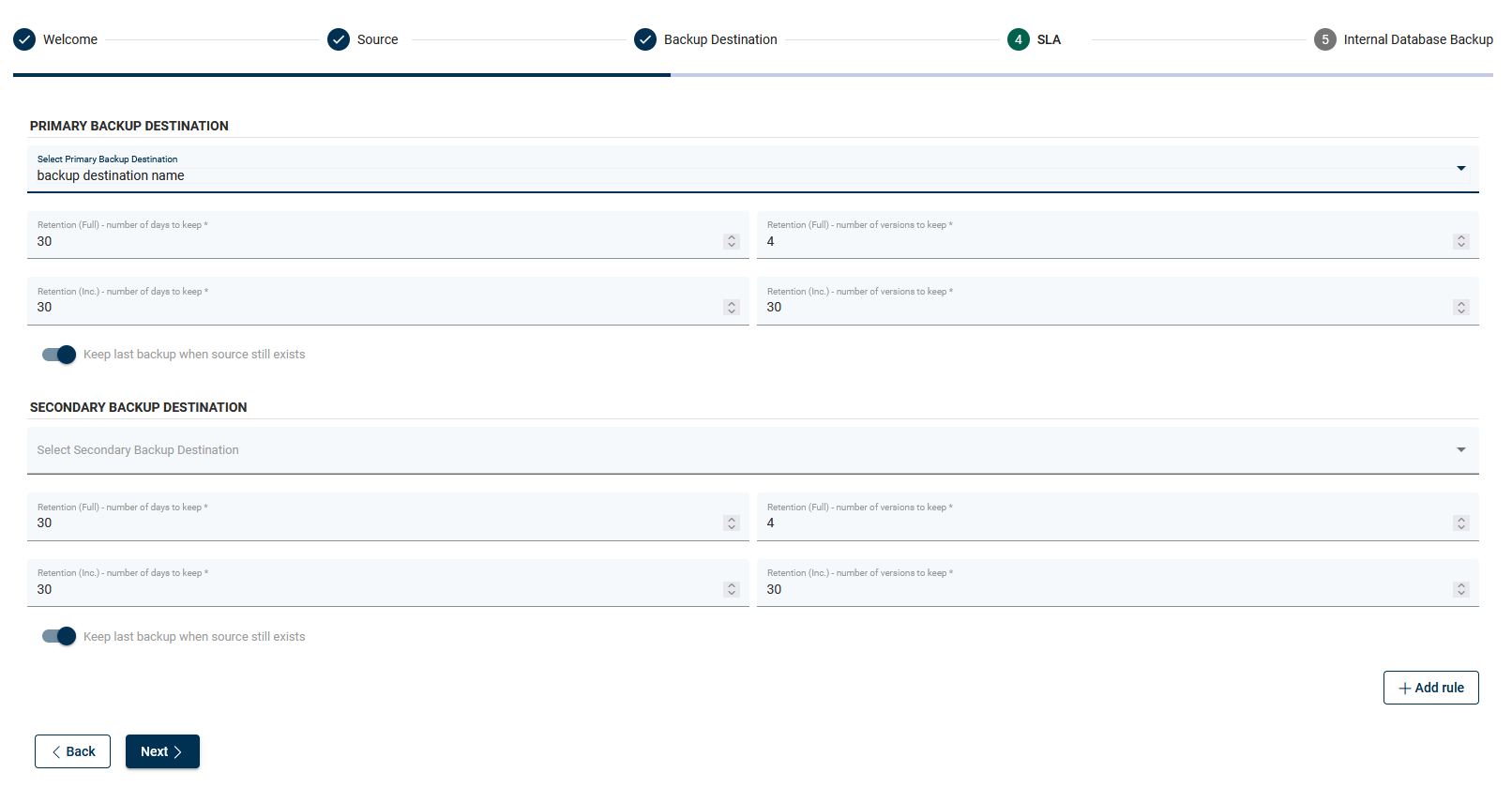 Finish this step by going to the next section or adding another backup destination.
