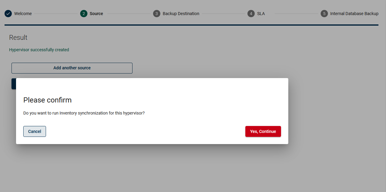At the end, you will see a popup window that allows you to run inventory synchronization. After that, you should see all the virtual machines from that hypervisor.
