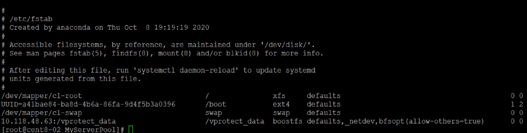 Create symbolic links for the OVM Pool name (MyServerPool) to BoostFS mount point command, for example: ln -s /vprotect_data /MyServerPool