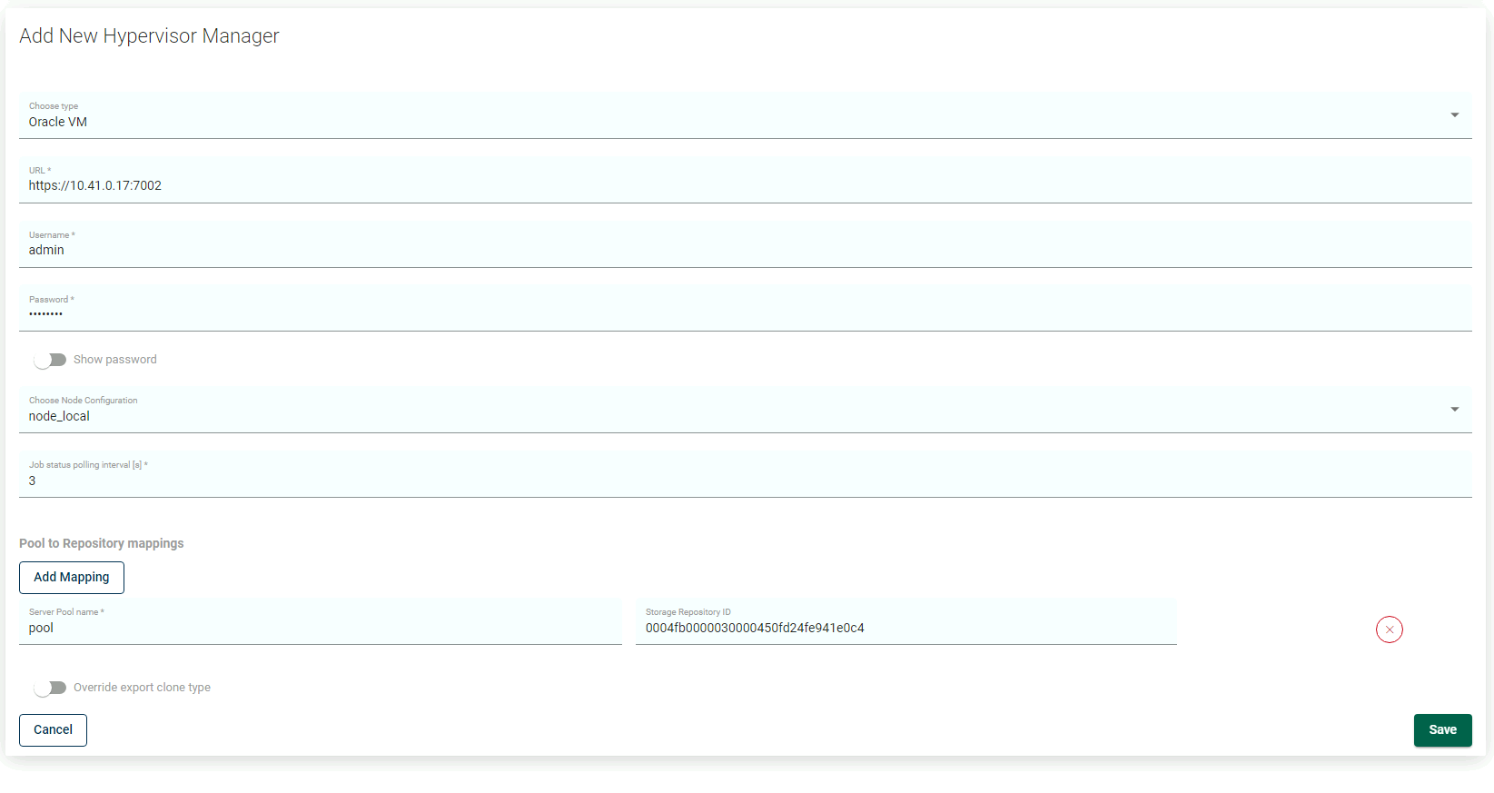 Specify mapping between server pool names and storage repository names in the hypervisor manager configuration