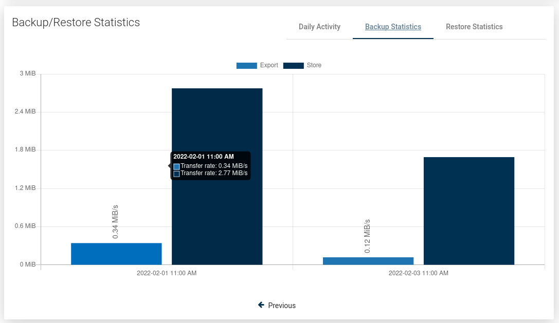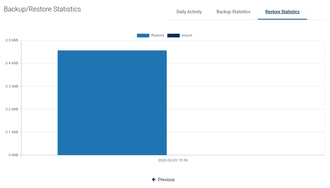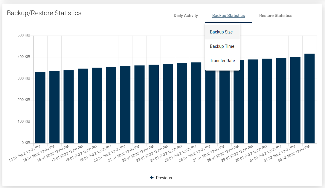 First, you'll see a daily summary of the backup and restore operations for the last month. This view is called "Daily Summary" and is the default view. You can switch the report between multiple views.