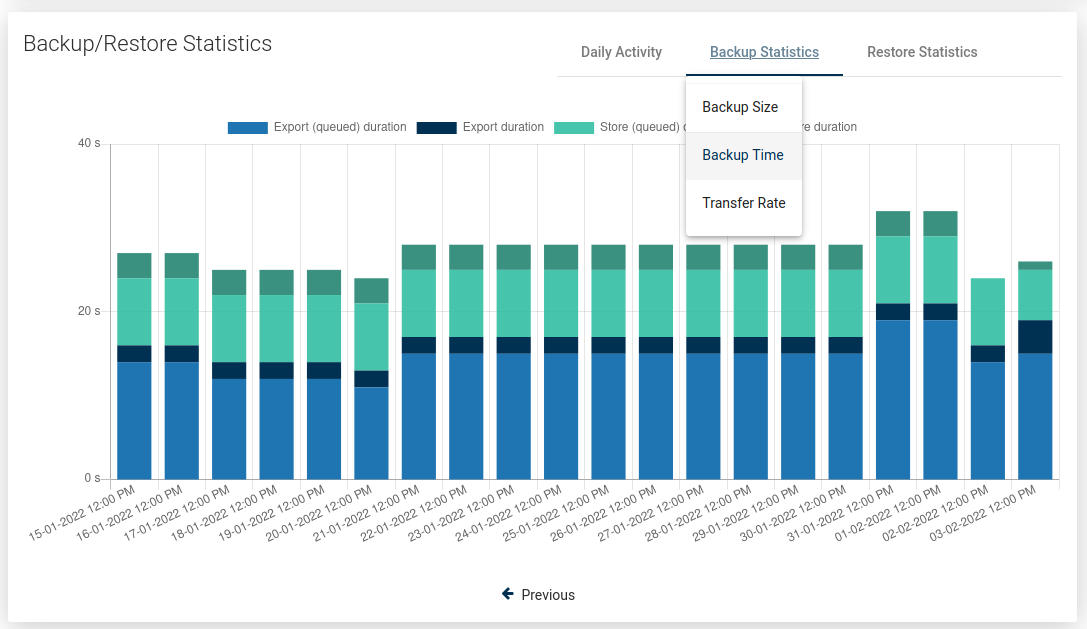 A view with the same properties as "Backup Time". It allows us to estimate how long it will take to restore the application backup files in the event of a failure.