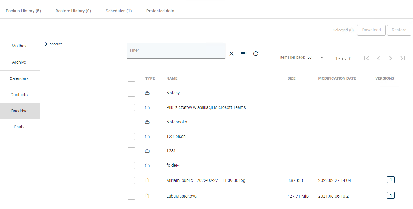 The calendar extends the possibilities of adjacent statistics. It allows you to neatly define the range of days you want to see, additionally makes a quick summary of the number of backups and restores (top right corner).