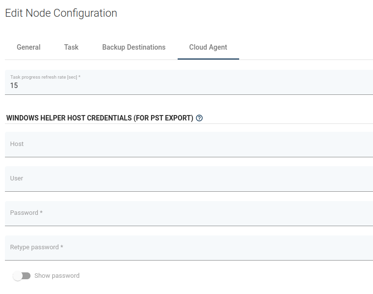 This section is used to provide connection details to the Windows Helper Host which is used in export to PST. You can find more information about requirements for Export to PST here.