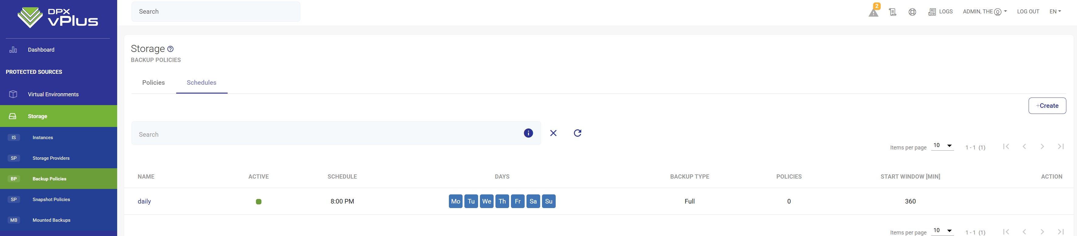 Schedules allow you to invoke specific policies periodically. This allows you to backup multiple storage instances automatically.