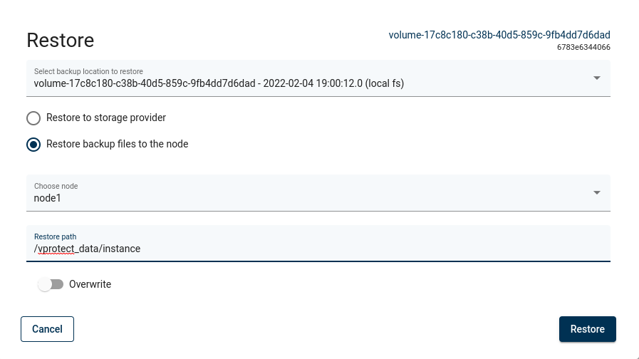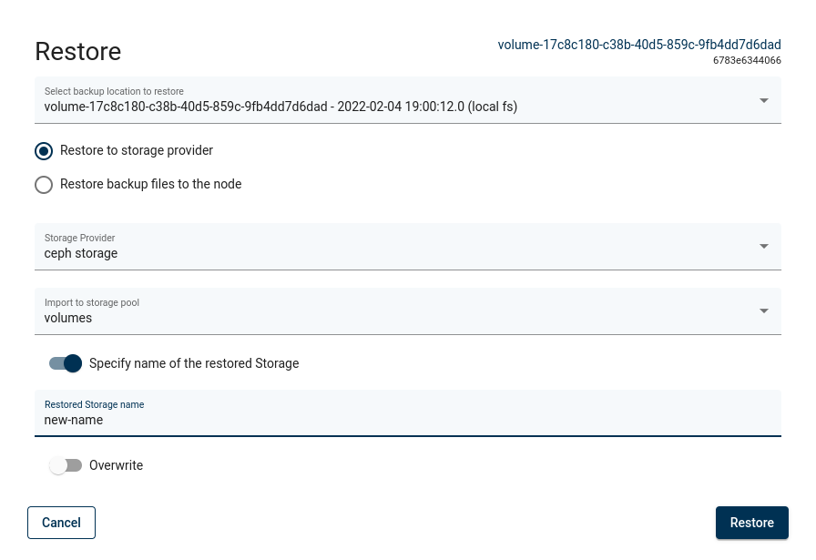 Note: every platform has some restrictions imposed on the storage instance name, such as length or characters that can be used. Check these limits before restoring with a custom name.