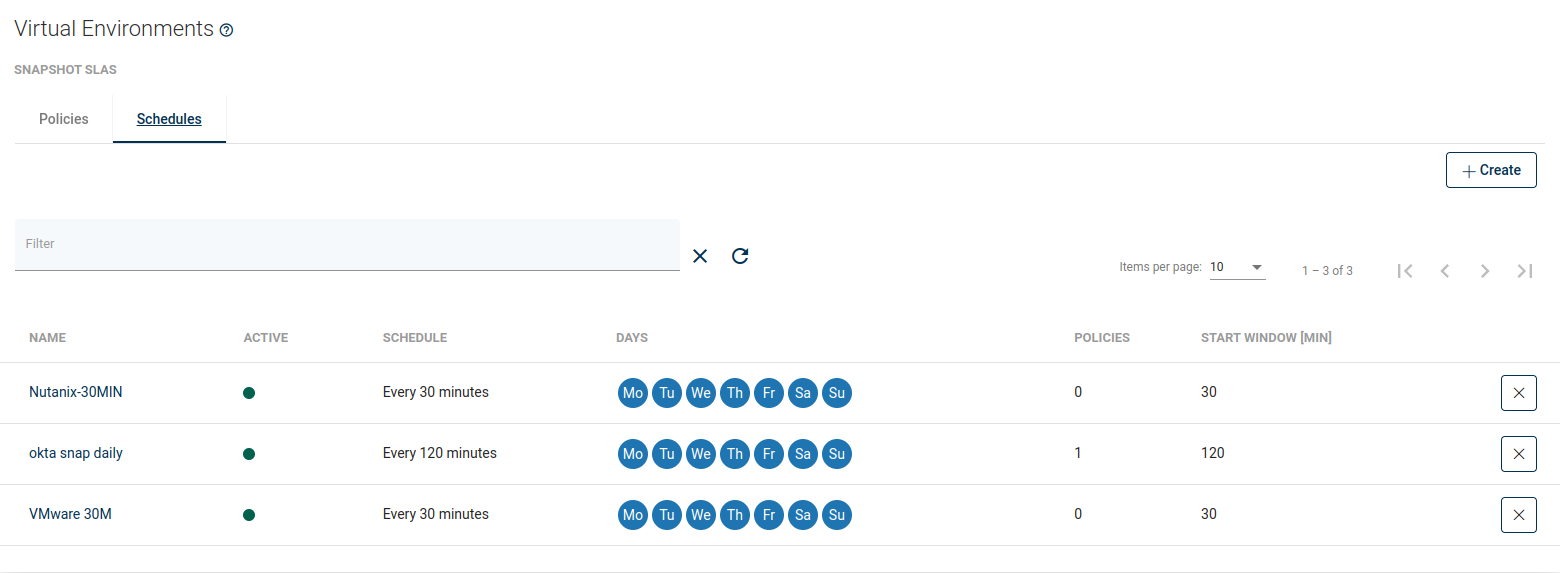 The schedule defines when and on which days snapshots should be created. To define a new schedule use the