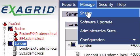 To create a network share, log in to the Exagrid dashboard and go to Manage -> Shares.
