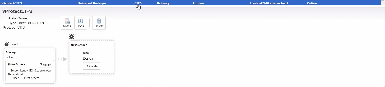 DPX vPlus supports integration with Exagrid. You can create two types of shares (NFS and CIFS), but in this case, we recommend using a CIFS share as the backup destination.