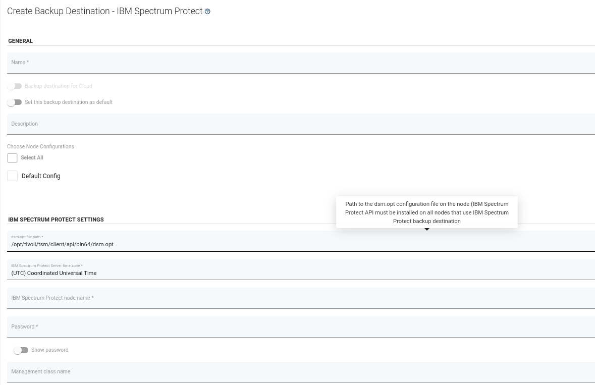 - Type name and attach Backup Destination to Node Configuration. You also need to set: