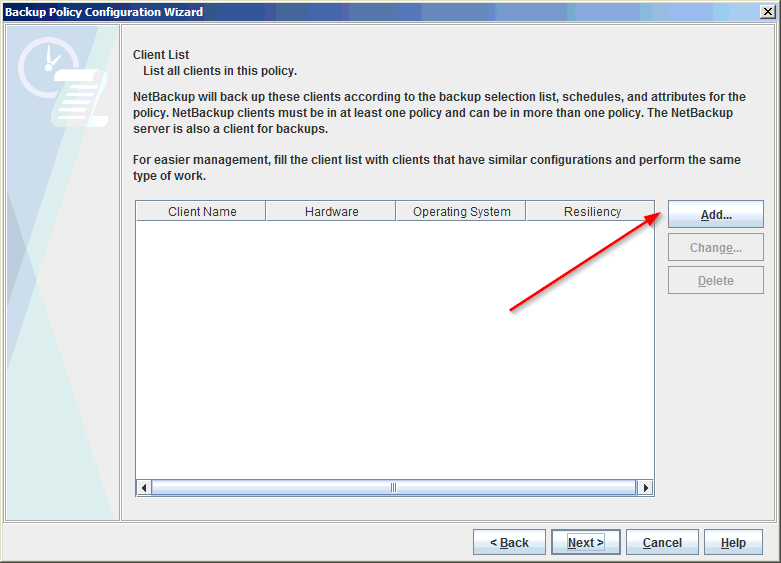 - Add the client to back up: