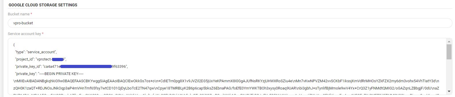 After the key is created, open your DPX vPlus Web UI (you can also use CLI), click on BACKUP DESTINATIONS, then on the Create Backup Destination button, and then select Google Cloud Storage from the drop-down list. In addition to the standard properties, you need to specify: