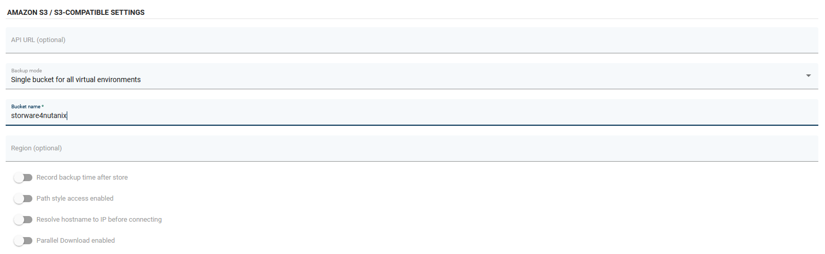 Nutanix Objects is an S3-compatible backup provider. Configuration as the backup destination is similar to AWS S3.