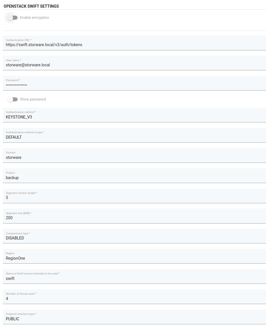 - in the case of KEYSTONE_V3 authentication method, you also need to enter