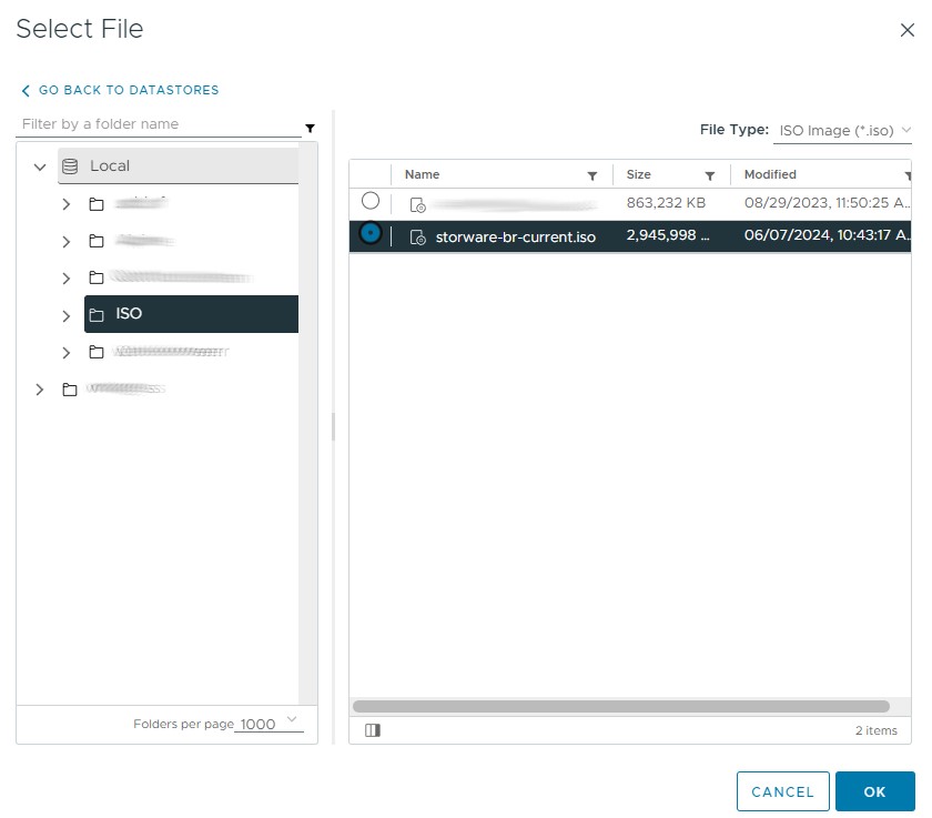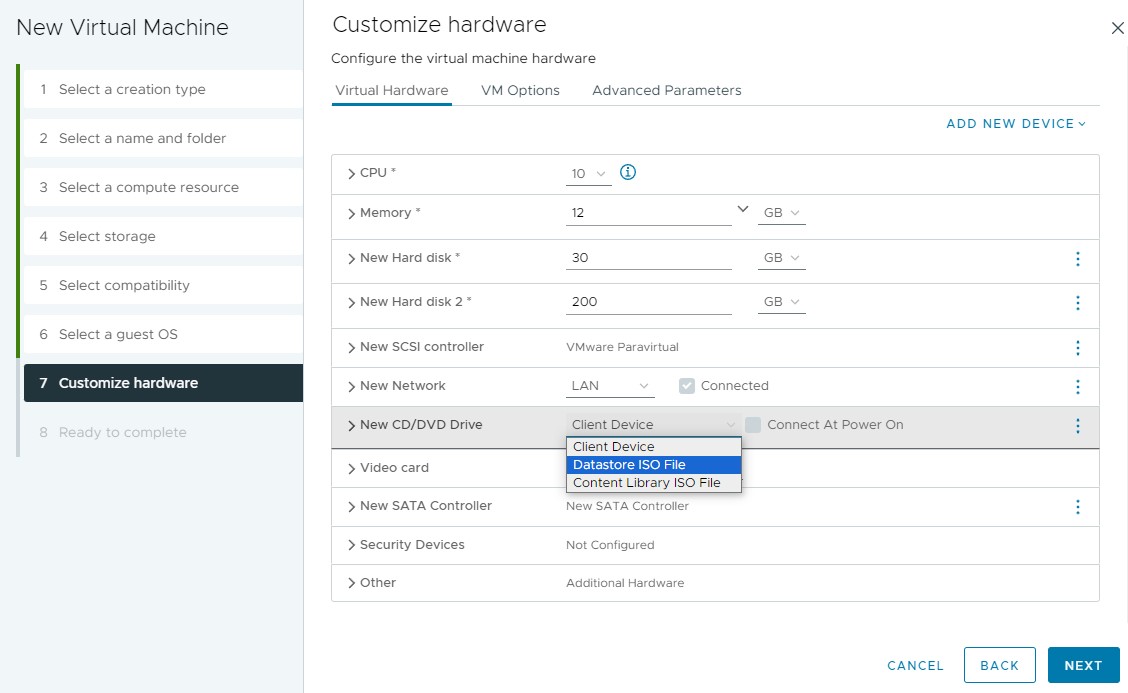 • In the next step, select "Datastore ISO File" as the CD/DVD drive source.