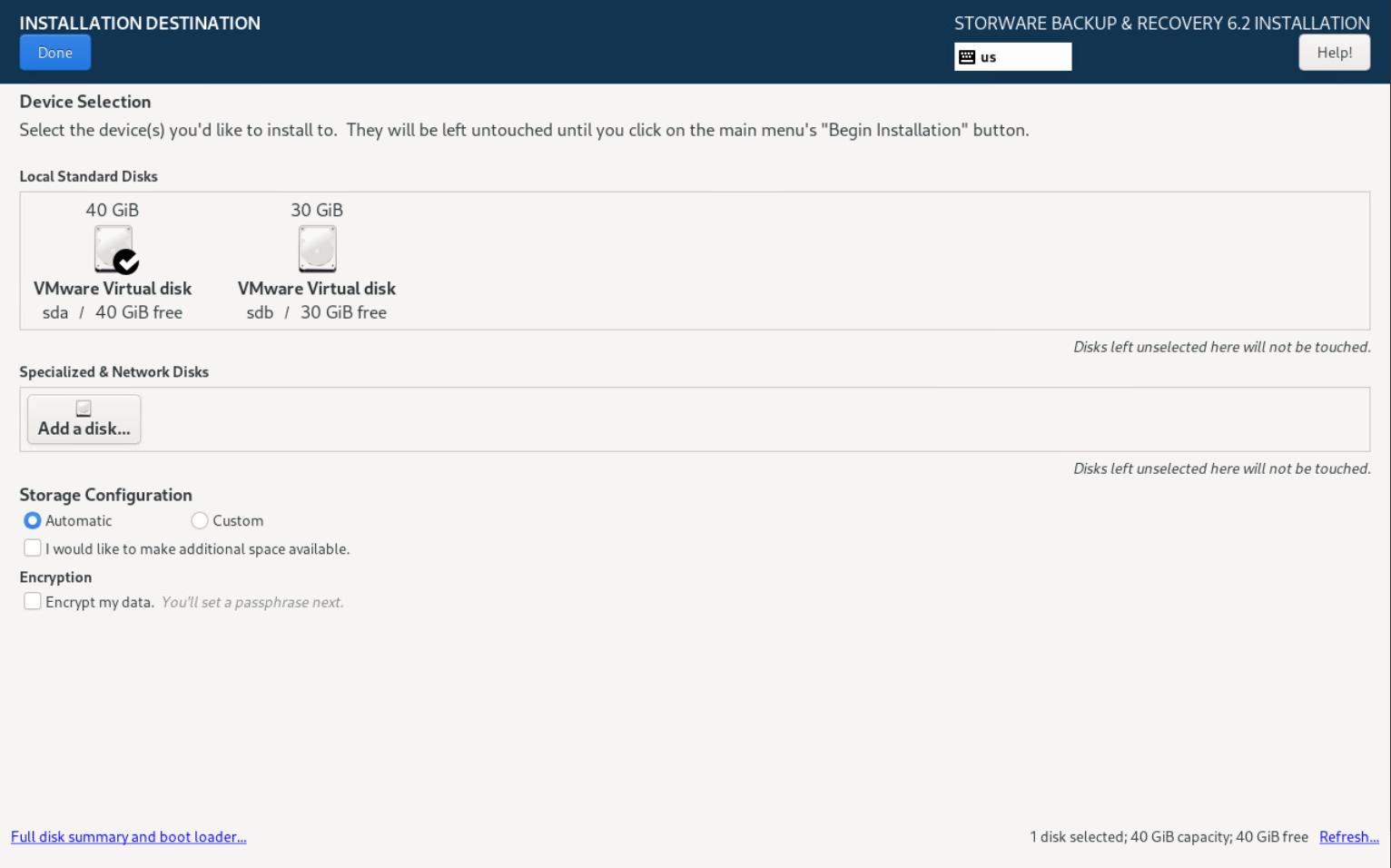 • Disk 1: Minimum 30GB for the operating system and SBR installation.