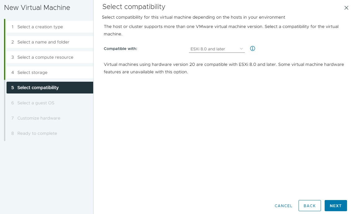 • Choose the compatibility mode based on your virtualization platform's requirements.