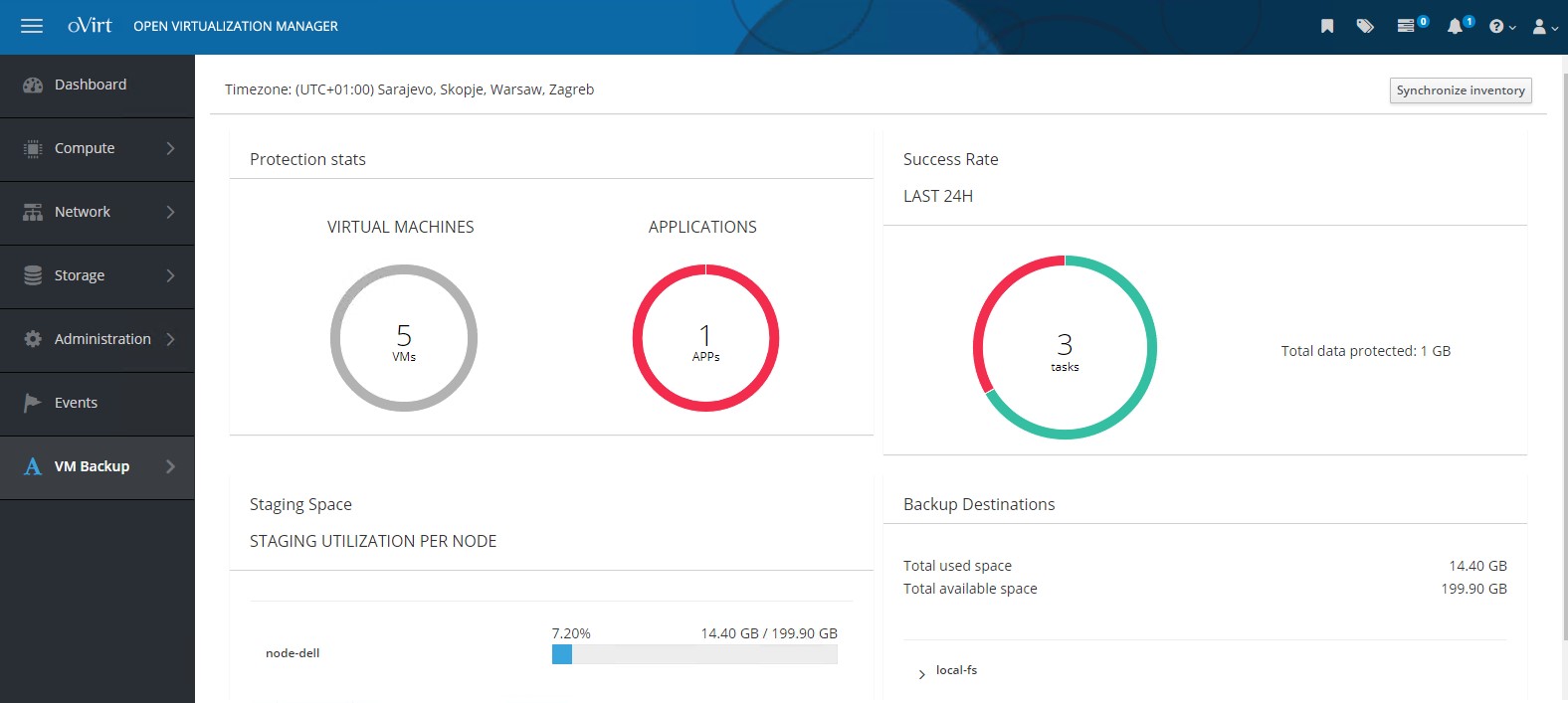 After installation (which is described at the end of this article) you will see a new tab "VM Backups" in the oVirt menu.