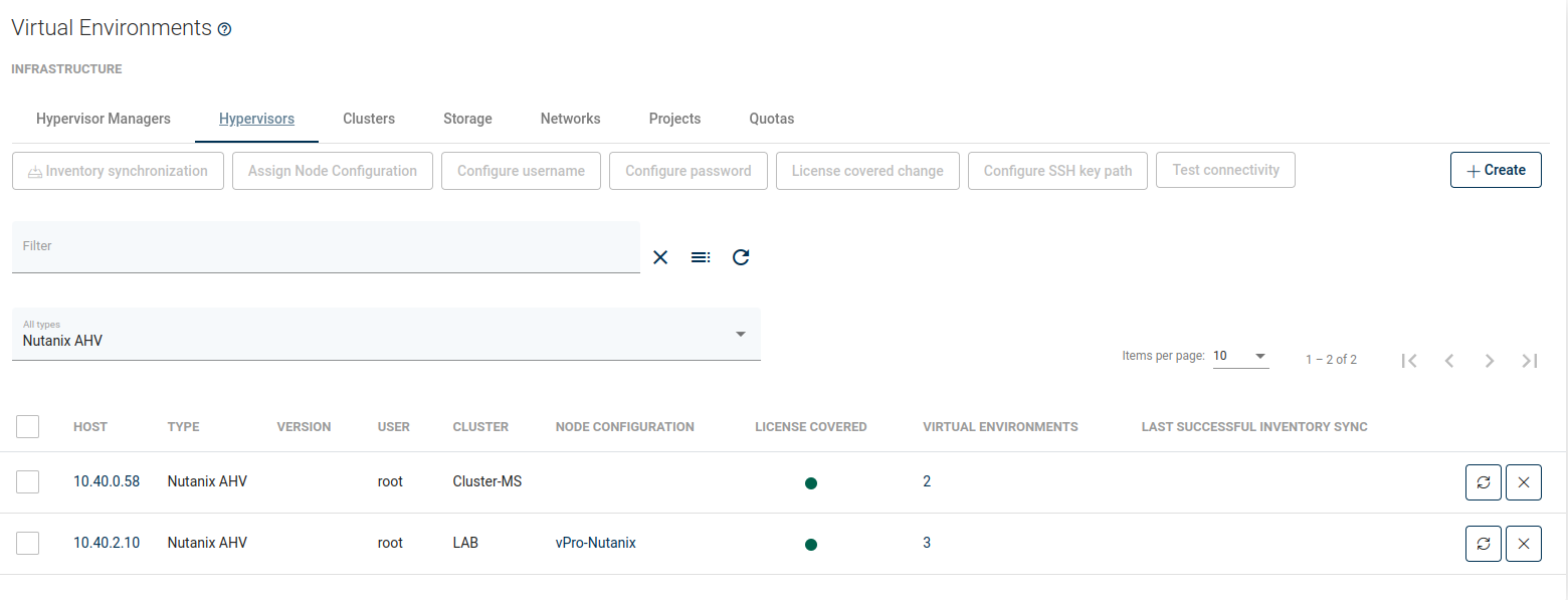 - Run inventory synchronization task, after that you should see all Nutanix hosts under the hypervisor tab